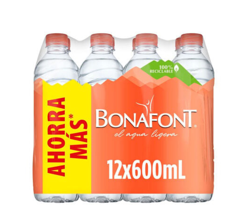 / Agua embotellada bonafont 600ml c/12 piezas